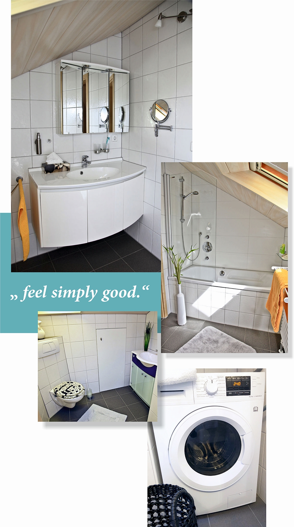 In the bathroom you have at your disposal a bath tub with shower, a large washbasin and a separate WC.