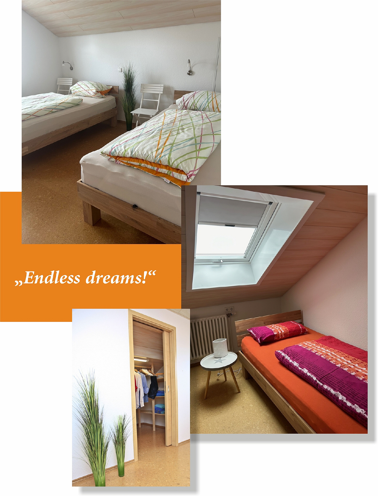 In the cosy bedroom you will find 2 single beds of 2x1m and a walk-in wardrobe with sufficient space for all your baggage.