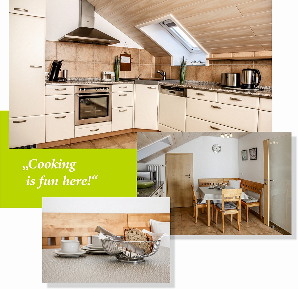 The very spacious kitchen is fully equipped including a toaster, a coffee percolator, a double bowl sink, a dishwasher, an ample fridge, an electric kitchen stove and a microwave as well as dishcloths and dish towels.