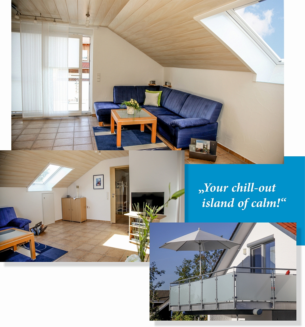 The living room invites to stay. Here you find a cosy lounge with coffee table and armchair, and for your entertainment there are a colour TV set, a hi-fi unit with DVD player and a small assortment of books.
